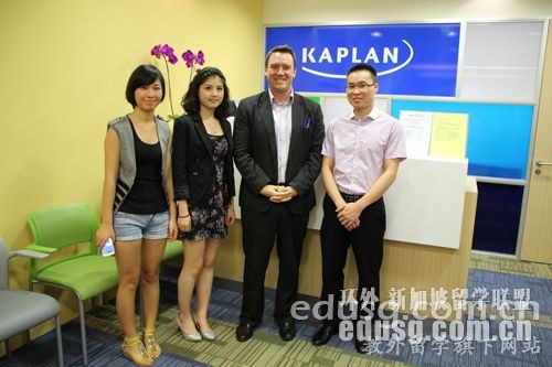 在新加坡楷博高等教育学院POMO校区大厅,新加坡KAPLAN亚太区事务总监Dave先生接见了教外留学代表团,双方进行了关于2013年新加坡KAPLAN发展的交流,谈论了今年来中国学生在新加坡楷博高等教育学院的学习与考试状况,和学生们在学习和生活中遇到的问题,双方据此商讨,表示将在2014年加大对中国学生在新加坡留学KAPLAN提供更周到的服务。